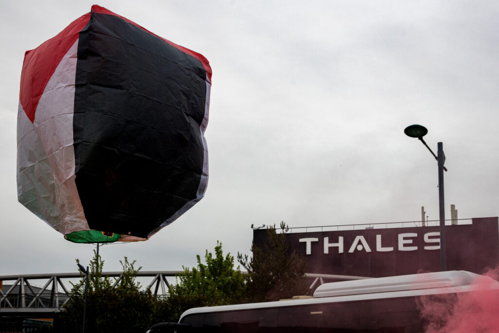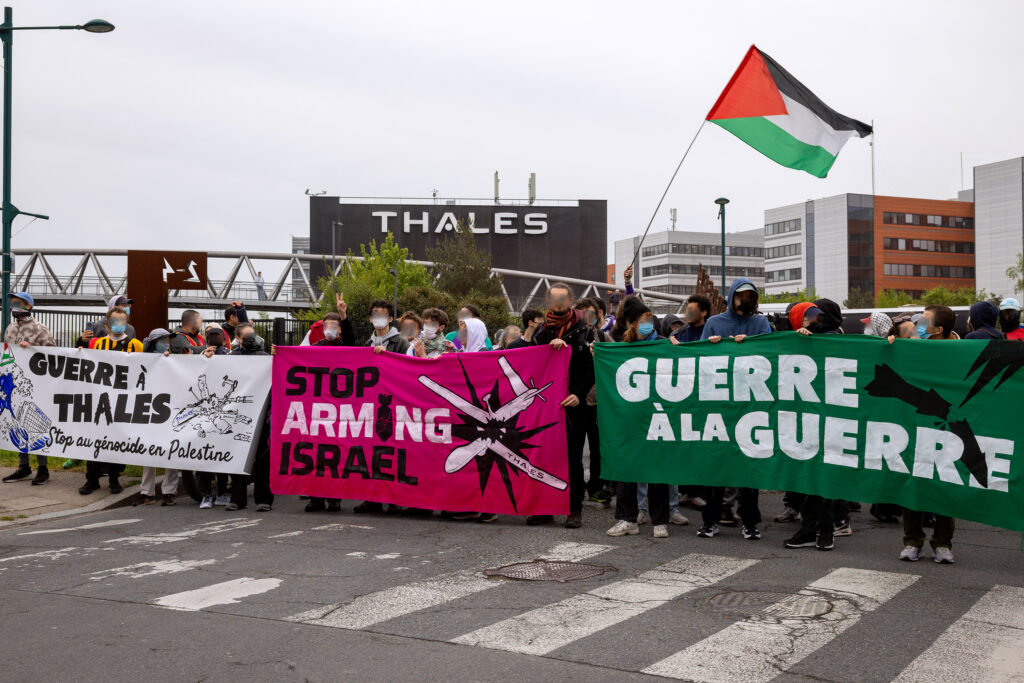 Le site de Gennevilliers est le siège de la branche dédiée aux télécommunications militaires de Thales, celle-là même qui produit les composants de drones qui permettent à Israël de surveiller, cibler et bombarder à Gaza, mais aussi des équipements électroniques essentiels au fonctionnement d’armes utilisées pour semer la destruction et la mort partout dans le monde, comme par exemple ceux de l’avion de combat Rafale.