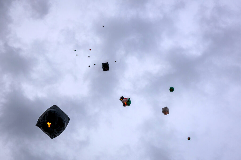 “Ce que nous tenons ici dans nos mains est pour nous bien plus qu’un hommage. Ces lanternes portent les couleurs de la résistance, celle de ces peuples et des ces personnes décidées à rester libres qui ont vu leurs vies leur être enlevées. Ces lanternes de papier, en s’envolant, vont illuminer le ciel de ces couleurs et vont l’arracher un instant aux ombres qui l’occupent habituellement”.